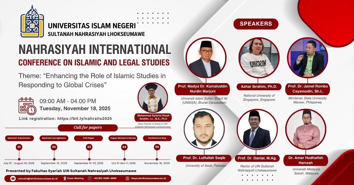 Lhokseumawe — Fakultas Syariah UIN Sultanah Nahrasiyah Lhokseumawe kembali menegaskan posisinya sebagai pusat pengembangan studi hukum Islam di Asia Tenggara melalui penyelenggaraan Nahrasyiah International Conference on Islamic and Legal Studies (NAHRALIS 2025) yang berlangsung pada 18 November 2025. Mengusung tema “Enhancing the Role of Islamic Studies in Responding to Global Crises,” konferensi ini menghadirkan akademisi dari berbagai negara dan menjadi forum ilmiah penting dalam mempertemukan diskusi lintas disiplin serta lintas wilayah.
