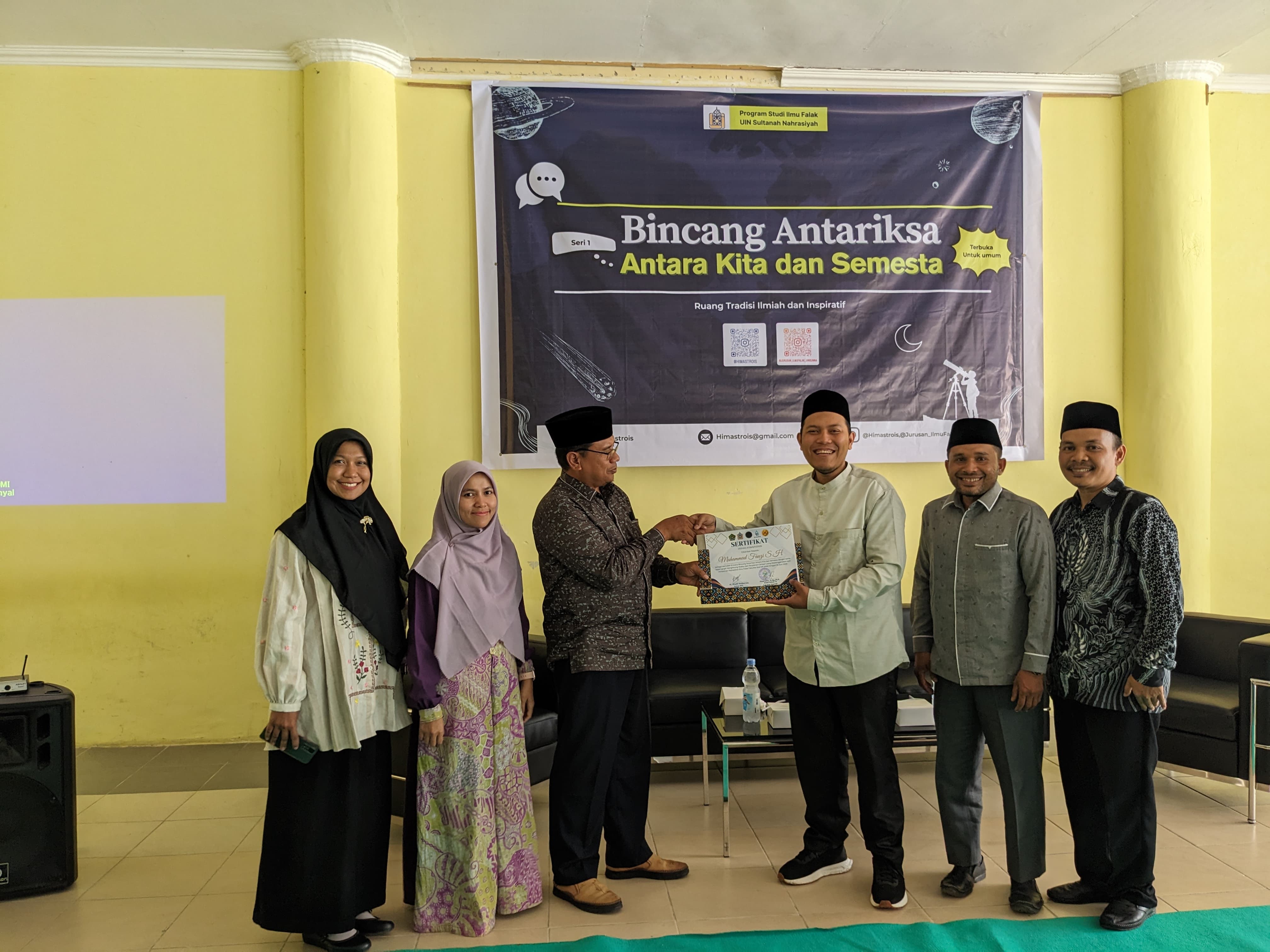 Lhokseumawe – Jurusan Program Studi Ilmu Falak bersama Himpunan Mahasiswa Jurusan (HMJ) Ilmu Falak Fakultas Syariah UIN Sultanah Nahrasiyah Lhokseumawe menggelar kegiatan edukatif bertajuk “Bincang Antariksa: Antara Kita dan Semesta” pada Rabu (25/6), bertempat di lobi Fakultas Syariah.
