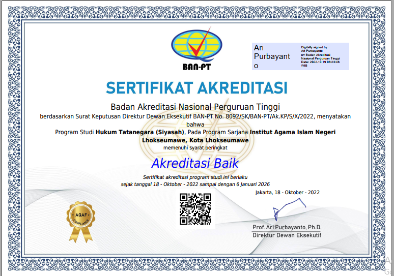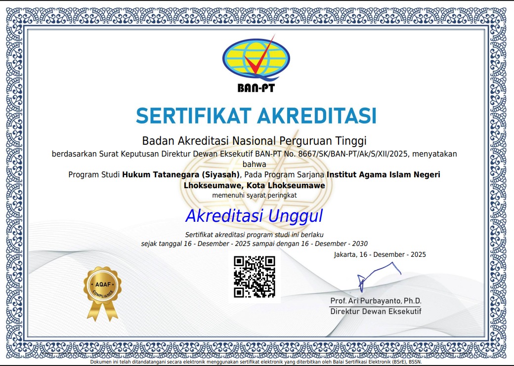 Sertifikat Akreditasi Program Studi Hukum Tata Negara